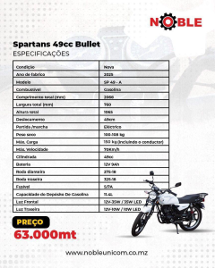 For just 63,000 Meticais, the Spartans Bullet 49cc is the perfect motorcycle for those who want freedom with style and intelligence.